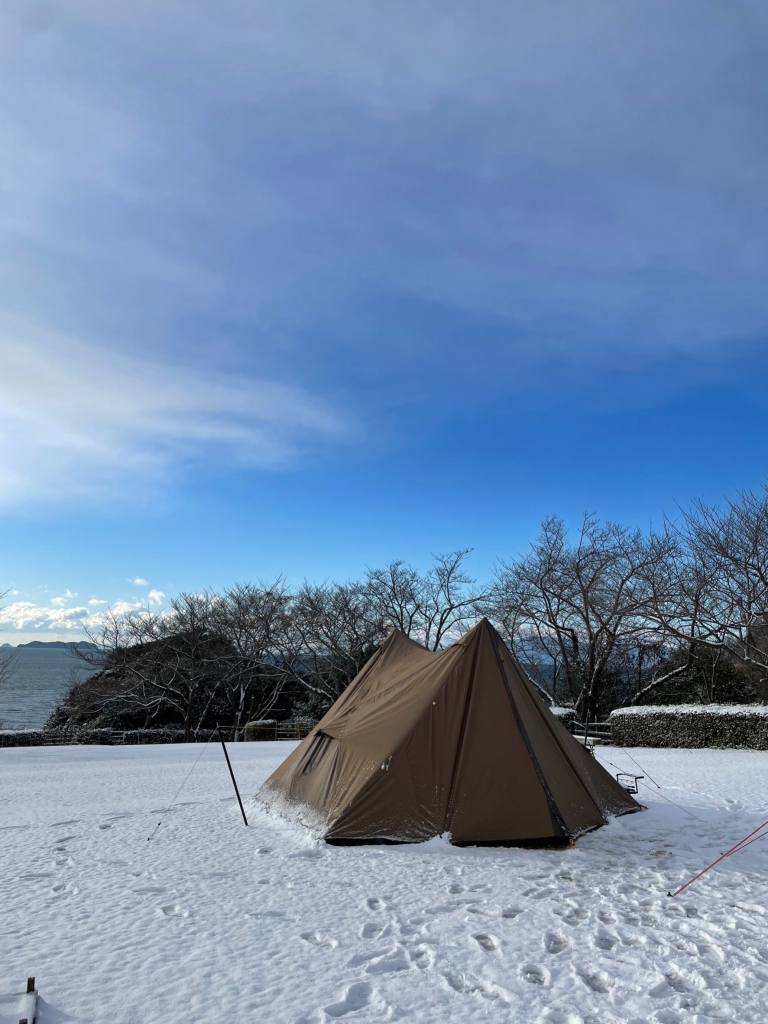 赤穂野外活動センターで牡蠣キャンプがしたい!とのことで行ってしまいました10年の1度の大寒波の日に😵💫13時頃到着。数時間後には寒波が来るとは思えないほどの天気。設営も終わり、ゆっくりしてました。16時頃から、だんだんと寒くなり、ちらほら雪も降ってきたので、ヘキサライトのファスナーを閉め、そろそろ宴会スタート!ものすごい暴風と猛吹雪😵💫コレはたまらん。2ポールも折れそうなので、幕内で支えながら、寒いのと猛吹雪でファスナーも開けれない🤪2時間であっという間に銀世界。それでも牡蠣は最高!旨い!パセコ1台では、寒いので待ってました我らが武井ストーブ!やっぱり暖かい!ウルサイけどね🤗少し雪も落ち着いたので、雪で冷やしながら、食べる苺も最高!満喫しました!雪中キャンプ!次の日は、道路の凍結で連泊も覚悟しましたが、なんとか帰れる!ということで高速道路の通行止めは、避けられず下道で帰ることに。赤穂〜西宮 8時間かかりました😵💫それでも、大寒波到来のあの極寒の日に、キャンプを決行するのは、キャンプ部hyogo.baseらしい!記憶に残るキャンプになりました!